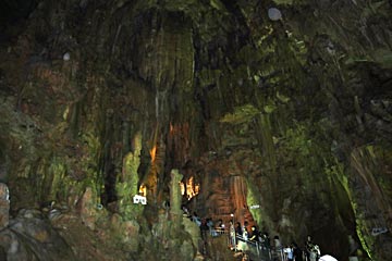 長径25m、短径16m、高さ29mの大きなホールになっています。このホールは地下水によって石灰岩が溶かされて空洞となり、その後、気の遠くなる年月を経てさまざまな鍾乳石ができ、装飾が行われ現在のかたちとなりました。