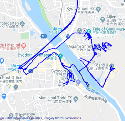 結局3日とも、軽い山登りになりました。1日目は宇治上神社裏手の大吉山展望台、2日目は音なしの滝、3日目はモンキーパークいわたやまです。京都は盆地なので、少し歩くと山になるのでしょうか。歩いた歩数は、それぞれ、21,800、15,500、20,400 歩でした。