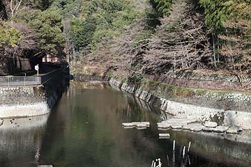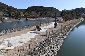 平等院の裏手から、橘橋で宇治川の中州に渡ります