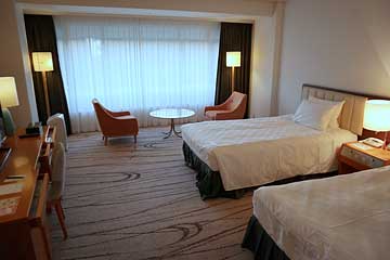 今回もJR東海ツアーズのフィフティ・プラスを使わせてもらいました。のぞみの往復券に2泊の宿泊(素泊まり)がついて、\30,700/一人です。新幹線は指定席ですが、乗り遅れるとあと便には自由席でも乗れません。