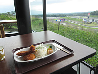 ちょうど昼時だったので、アドバンコーナーが見えるレストランで、ミックスフライ定食\1,000。