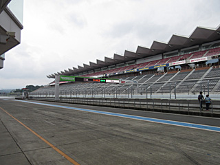 ピットを覗いたら、コースを見ている人がいました。手前がピット側の道路、奥がサーキットのレーシングコース。