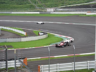 金網の隙間から、レーシングコースを覗いてみました。この時は一般車が走行していました。