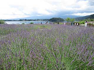 河口湖北側にある「大石公園」。今日までラベンダーが咲いていて、明日から有料で刈り取り体験が始まるというので、見に行きました。ちょっと終わってかけているラベンダーもありましたが、まだたくさんきれいに咲いていました。
