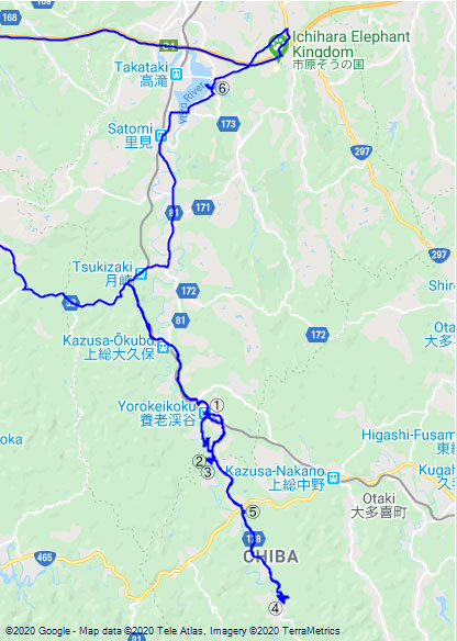 アクアトンネルは自然渋滞していましたが、割合スムーズに養老渓谷駅に到着。駅に車をとめて(\500)ハイキング路を出世観音と養老渓谷。ハイキング路だけではなく車が通る道もあり、アップダウンが大きかった。