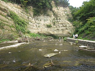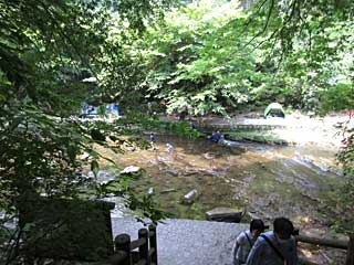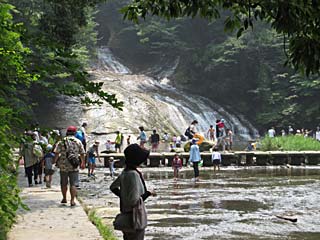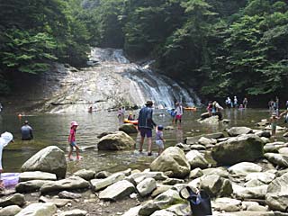 粟又の滝。滝つぼは浅く、たくさんの家族連れが遊んでいました。