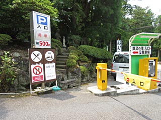 粟又(あわまた)の滝に来ました。秘湯の宿「滝見苑」の駐車場を使わせてもらいます。この日は日帰り湯、昼食営業ともに無し。駐車場はほぼ満車、山の斜面を使っているので、すごく上まで上がりました。
