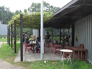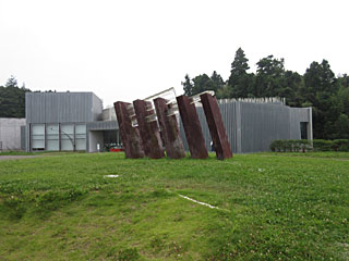 左側が美術館、庭に建っているのは「藤原式揚水機」を模した展望塔