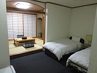 今回の部屋。バリヤフリーの広い部屋でした