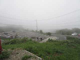 県営の駐車場で展望台がありますが、霧が出ていて、下も上も良く見えません。周囲の店も終わっていました。