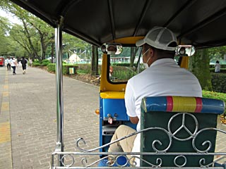 トゥクトゥクに乗ったのは 5年ぶりです。ドライバーも入れて4人乗り、タイから輸入して車検を取ったそうです。