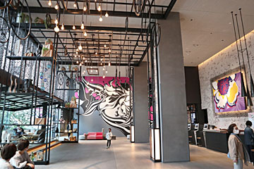 ホテル1Fのファミリーマート横から、ロビーに通じる通路があり、外国の方も喜びそうな凝った作りになっていました。