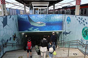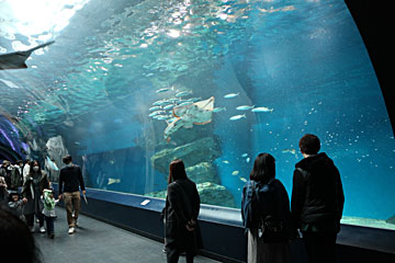 ノコギリエイやマンタを下から覗ける「ワンダーチューブ」