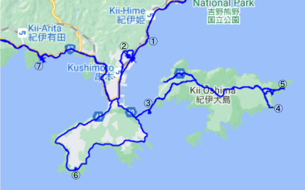 ⑧橋杭岩、ホテル&リゾーツ 和歌山 串本、海金剛、日米修交記念館、トルコ記念館、南紀熊野ジオパークセンター、串本海中公園