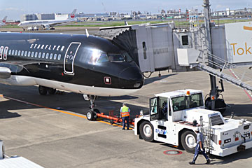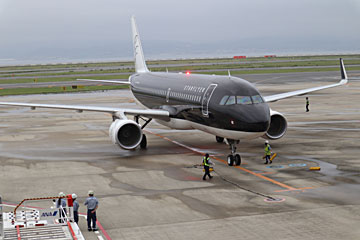 羽田から関西空港に飛びます。飛行機は今回もSFJ(スターフライヤ)、黒いボディのA320。