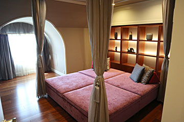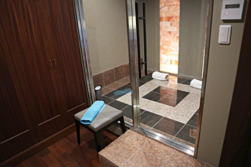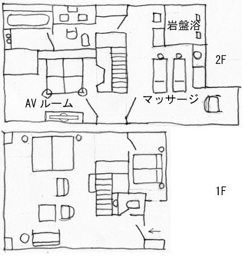 部屋は8Fですが、1F部分にリビングとサブのベッドルーム。階段を上がった2F部分に書庫/オーディオルームやマッサージ用のベッド、岩盤浴の部屋がありました。