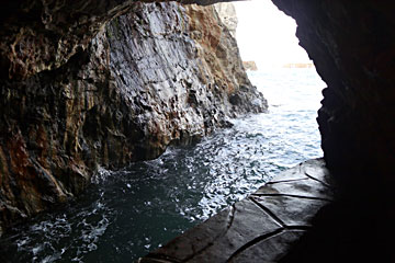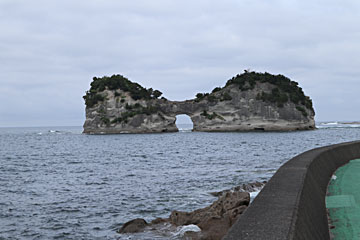 島の中央に円月形の海蝕洞がぽっかり空いています