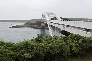 串本大橋を紀伊大島側から見たところ。この日は朝から土砂降りの雨でした。
