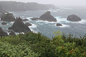 マグマからできた岩が太平洋の荒波によって削られてできた景観