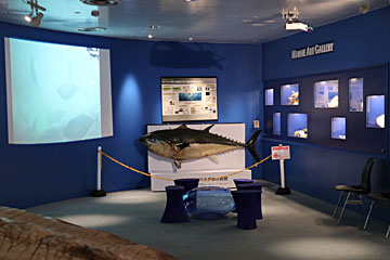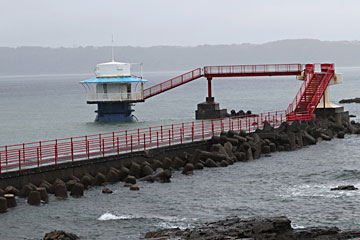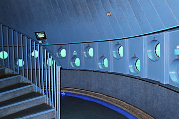 雨があまり降ると、川の濁った水で海中も見えなくなり、中止になると言うので、まずは「海中展望塔」を見学します。