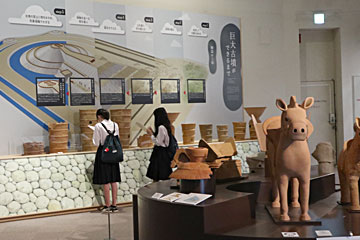 「百舌鳥(もず)古墳群ビジターセンター」。 8K業務用カメラを用いた古墳群の空撮映像や高精細に撮影した堺市の歴史・文化資源の映像を空間全体で表現し、1600年間に及ぶ堺市の変遷を体感(リンク)できました。