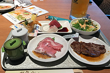 三日目は本州最南端の串本に泊りました。平日(7/01)でしたが、ちょっと空いている感じ。それに比べると、白浜の2つのホテルは、やはり平日でしたが、お客さんは結構入っていた感じです。次の日の朝に、車で紀伊大島や潮岬も回ってきましたが、四日目五日目は本降りの雨でした。梅雨の時期ですし、和歌山は雨が多い地域だそうなので、前半3日、ほとんど雨に降られなかったのはラッキーでした。