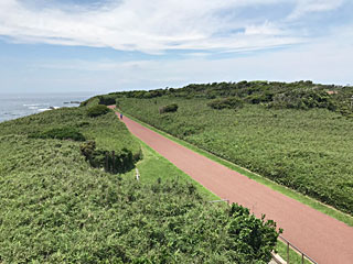 おしゃれなデザインの安房埼灯台は、地図右端の旧安房埼灯台跡から、少し高いところ(城ケ崎砲台跡辺り)に移されていました。