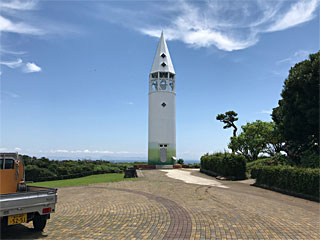 きれいに整備された公園です。この日も、展望台周りの植栽を電動バリカンで角刈りしていました。
