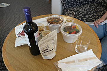 このホテル2Fの中華屋さん(チャイニーズ・テーブル)のテイクアウト(\1,300x2)と、ホテルに入っているローソンのワインやおつまみの夕食。