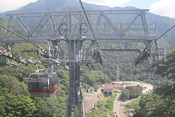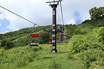 ロープウェイに続き「天神峠観光リフト」に乗ります。リフトは夏季は下げて、落ちても危なくないようにしているようです。
