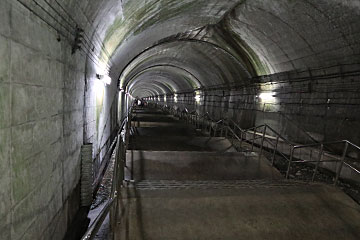 下り階段を覗いたところ。462段下に2番線ホームがあるのだそう。右側にはエスカレーターを付けるスペースがありますが、付くことは無さそうです。