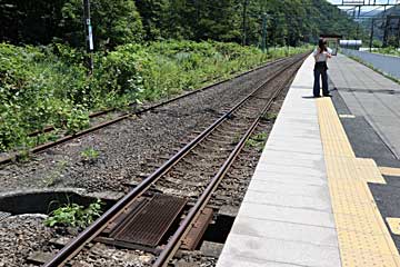 上りホーム。電車は臨時電車の1本ずつを含めても、一日に上下それぞれ6本しか来ないので、上下を分ける必要もなさそうなのが不思議。