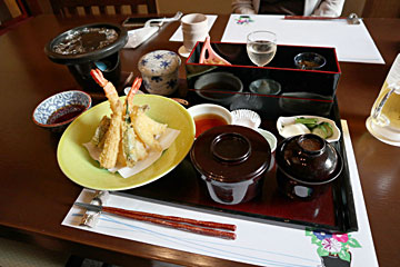夕食は1Fの「和食処 京かる」で天ぷら御膳