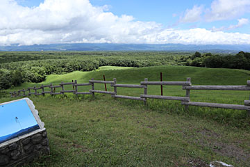 見晴台からの風景。遠くは樹海ですが、近くは牧草地と思われます。画面のもっと左に浅間山があります。