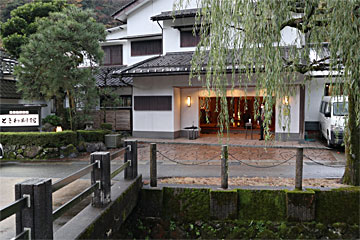 旅館をチェックアウトして、一件くらい外湯に行ってみよう、ということで、昨晩行列していた「御所の湯」に来ました。昨年暮れにリニューアルしており、入ると直ぐに露天風呂、奥には滝が流れていました。