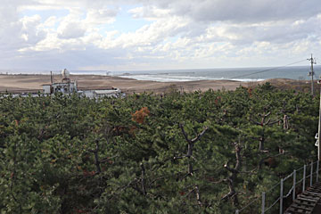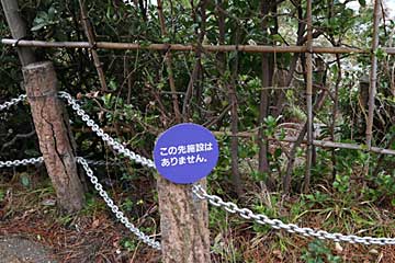 日和山海岸。以前は降りられたようですが、いまは、降りるところはふさがれ「この先施設はありません。」との看板(写真)がありました。