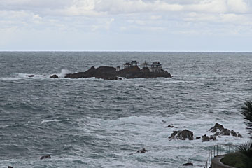 沖合に、竜宮城が見えました。正式名は、後ヶ島(のちがしま)で、昔は船で渡れたらしいです。