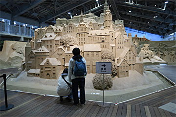 砂と水だけで、のりとかは一切使っていないそうです。1~2年で壊して違う砂の彫刻を作るのだそう。