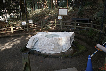崖を下ったところにある吐玉泉。白い石から水が湧き出ています。白い石は水の流れで侵食されているのだそう。