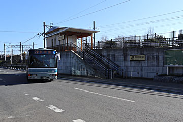 バスに乗って水戸駅の方に戻ります。写真奥はJR常磐線の偕楽園駅(梅まつりの頃だけ営業する臨時駅)。