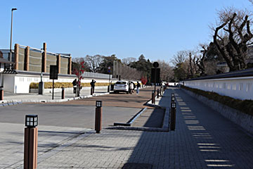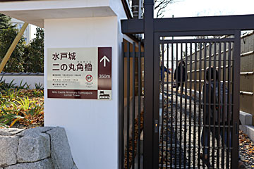 水戸城大手門をくぐった先は、昔の城内。今は左側は中学校、右側は幼稚園になっており、塀は城壁のような感じになっていました。