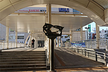 水戸駅北口のペデストリアンデッキにいらした、水戸光圀御一行(のブロンズ像)。