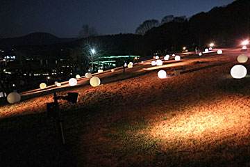 いばらきフラワーパークは旧「茨城県フラワーパーク」が、2021年4月にリニューアルしたのだそう。今期のイルミネーションは、11/13(土)~1/10(月)。無料駐車場は900台あるのだそうですが、パーク前の駐車場は125台程度で、着いた頃にはすでに満車で、近くの駐車場に迂回するのでしょうが、前の道も渋滞しているのが見えていました。