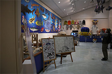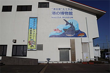 渚の博物館内部。壁の大きな絵は、さかなクンが書いた「房総の海のお魚たち」
