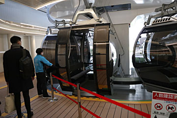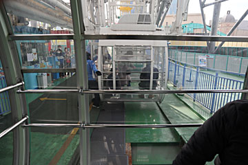 降りる間際。前のゴンドラはシースルーで、人が乗り込む時に観覧車が一時停車しました。