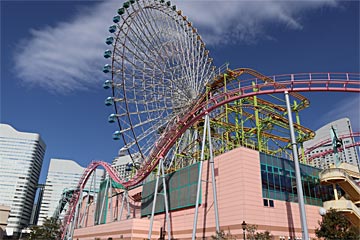 ロープウェイとのセット券(¥1,500)で、近くのコスモワールドの大観覧車「コスモクロック21」に乗ります。コスモワールドは 11時オープンで、外に並びました。