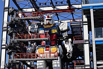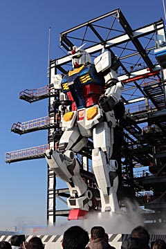 ガンダムファクトリー横浜で実物大のガンダムが動くのを見ました。前にお台場で見たことがありますが、頭がちょっと動くものでした。今回は、後ろにGドックとGキャリアがついており、手足を上げ下げしたり、腰を曲げたりできて、表現の幅が広がっていました。