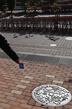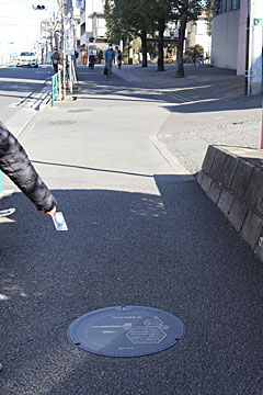 昼食後、今度は立川駅の南側から、左手に13分ほど歩いた「立川市子ども未来センター」で「第一弾くるりん」マンホールカードをもらいました。実物のマンホールも、近くにありました。