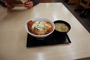 バスで立川に戻り、駅のカツヤでかつ丼ととん汁のランチ