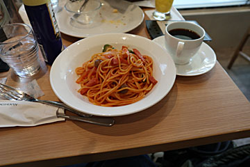駅ビル1Fの「珈琲館」でスパゲティセットのランチ